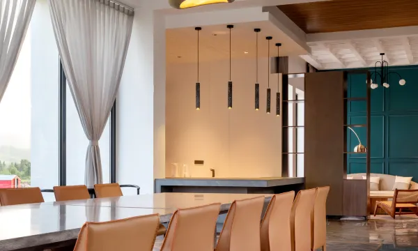 房间落地窗正对雪山,早晨睁眼就是日照金山的壮丽。雪花簌簌落在松林间,世界静谧得像童话。看窗外繁星下的雪原,这种沉浸式雪景体验,绝对值回房价。