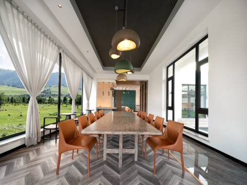 在独库公路驰骋感受一天有四季,十里不同天的美景,舟车劳顿后便想寻得一处清凉地。民宿坐落于新疆伊犁那拉提镇空中草原核心景区正对面,距独库公路检查口方便快捷。民宿与空中草原紧密连接,不需进入景区就能感受零距离与草原、云杉、胡杨林亲密接触。民宿占地六亩,不具象于某一种风格的风格,十一种房型,房间面积30-120m²不等。梦百合床垫、TOTO和汉斯格雅卫浴、地暖等,不求代价,只望南来北往的朋友能洗去一身疲惫,养精蓄锐以**的状态去感受大美新疆。民宿内有星空露营草坪、提供露营装备、棋牌室、茶室等;烧烤自助,伊犁马队牵马上马服务。