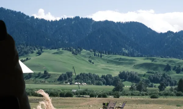 民宿对面是那拉提盘龙古道的美景,一览无余,