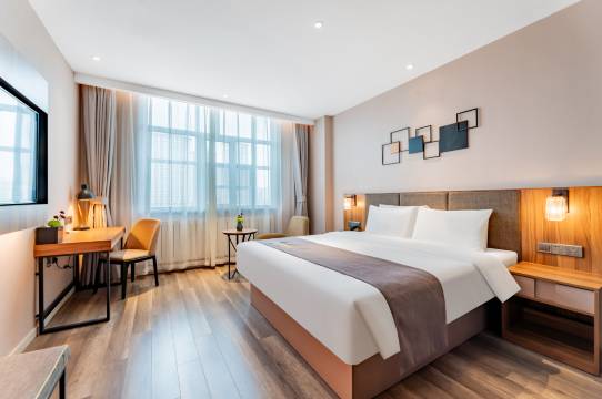 酒店设施齐全,房间干净整洁卫生又舒适,早餐营养美味健康,距离万达很近,很方便