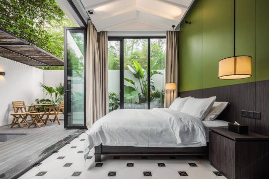 客房倚竹林或观中庭水景,均拥有景观。