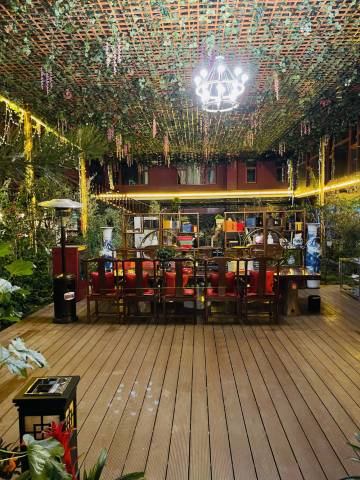 这家民宿虽然靠近古城北门,但是巧妙的避开了主街的人潮,来到这里喜欢清晨待在院子里的观景平台上待着远眺古城,心理会平静下来,丽江的慢生活会潜移默化的影响着每个人的心情,也许这才是丽江最动心的样子。