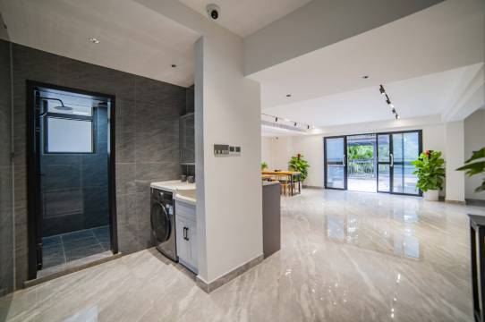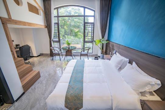很好的一次体验!定了一整栋别墅,9间房都不一样的风格和装饰,但都很有特色。亲子房有阁楼,有榻榻米,有超大空间超大落地窗,窗外就是花园,花园有秋千。晚上可以在负一楼大厅喝茶,有KTV唱歌。同行12人都满意。