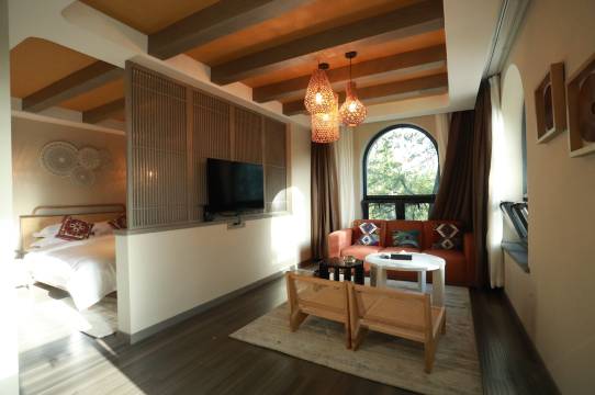 整体的设计风格很喜欢 床软硬适合 环境很好 就在景区入口旁 很方便 房间打扫得也很干净 保安还会帮你拿行李 服务很好