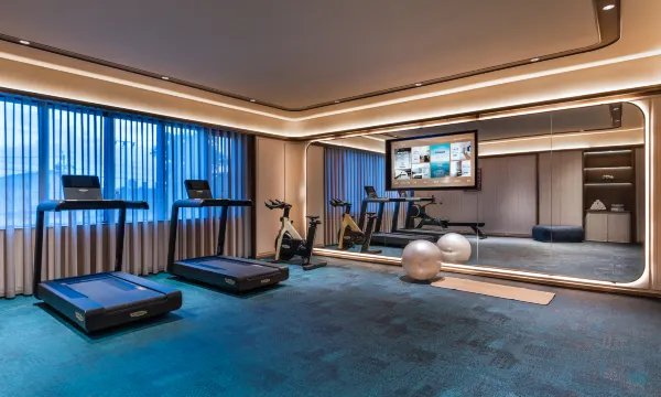 酒店设施齐全,有洗衣房健身房什么的,环境很好,房间设施也不错,房间面积大,前台服务热情,还有小机器人送物,推荐推荐