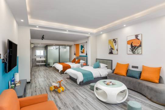 房间装修风格是现代简约的,空间较大,干净又整洁,看着很舒服,特别是大大的飘窗,小孩很喜欢,选择这家,去各个景点游玩,还算方便,选择这家,性价比超高