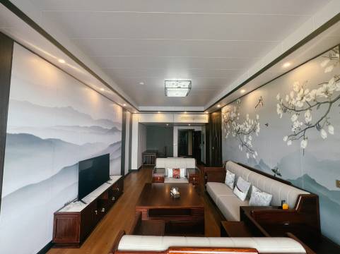 房间很大,住着很舒服。度假山庄的感觉。设备设施丰富,还有羽毛球场呢。窗户外面就是梯田风光,美景无限呀。还希望商家给电车提供充电桩就更完美了。还会再次入住。