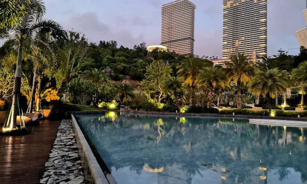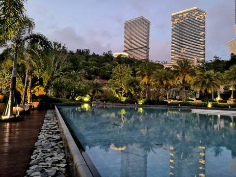 酒店的硬件设施很不错,各种游玩设施适合各类型出游。有水上乐园,无边泳池,图书馆,可以在酒店呆一天好好玩。房间的景观也是十分好,视野开阔,晚上还能看到沙滩放烟花。酒店的自助晚餐和自助早餐都挺不错,食材都很新鲜,早餐有现拉的肠粉真的点赞👍酒店的管家服务也是非常好。唯一不足就是楼下的KTV唱歌唱到12点,声音较大影响休息。