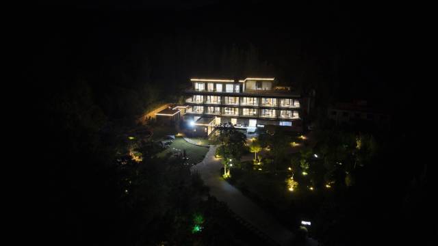 这家酒店地理位置非常好,依山而建,坐落于一个安静的小村庄里,远离喧嚣,环境清幽雅静,户外草坪区布置了休闲桌椅和遮阳伞,晚上的灯光照明也很有意境,适合亲子游和假期周边休闲的好选择,一楼有个儿童游乐区,小孩子玩的很开心,房间宽敞整洁,有宽大的阳台,透过大落地玻璃窗就能观看不远处的青山美景,有种坐忘山林的感觉