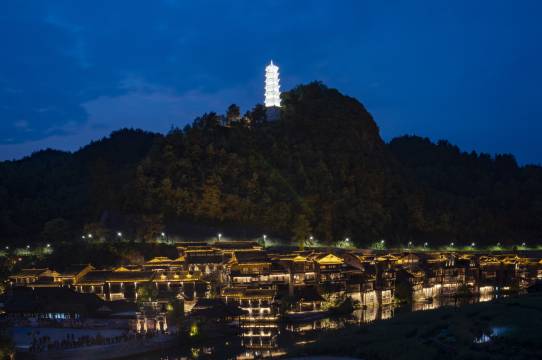 环境:客观来说整个乌江寨商业气息严重,吃饭物价虚高,人造景点,想体验古寨人文就根本没有哈,就是把游客圈起来搞钱,里面基本上都被承包了,要去原生原味的古镇才有意思。小,逛完最多2个小时。其他时间都特别无聊,只能靠意境耍了,要是找个旅拍摆摆拍拍,可能不那么无聊一点。人造景点小且无人文、自然景观价值,只能靠表演吸引人了,被视频骗来的慎重了,纯度假休息随意。晚上的无人机表演换位置了,在房间里是看不到了,需要出去看。