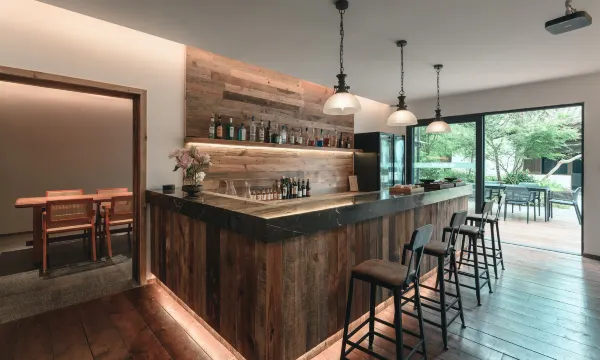 这是一栋依山傍水的现代别院,朝迎晨曦晚待落霞,得天独厚的位置包揽大自然的美丽风光。置身室外,你会被大自然吸引。
