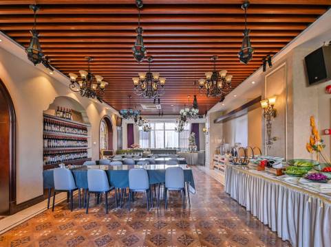 本酒店设营养早餐,注重养生,融入地方特色的以中西结合的自助餐厅,午商务餐、下午茶、晚清酒吧是以商务客人、休闲客人需求与便利的综合酒店,酒店拥有特色各异的客房,以套房、阳光房、棋牌房、商务豪华房、精致特色房,以简欧风格融入中国固有特色的客房,房间配有健身运动单车、智能化等一体的科技产品给到顾客。酒店设一间豪华带棋牌、K歌的以地方特色菜肴的餐饮包厢。