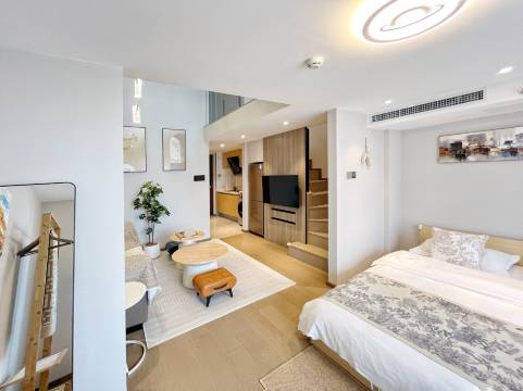 景色特别好看,屋子很大,loft住起来很舒服,一家三口四口也是没问题,屋内配一次性毛巾浴巾马桶套,很贴心。楼很新的一个公寓,楼下星巴克蜜雪,方便。