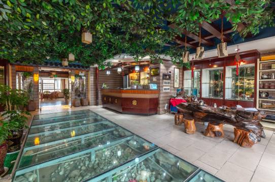 哇让我眼前一亮呀!大厅里不仅有小饼干还有茶水服务,最优质的是前台人员很热情跟我推荐他们的特色住宿可以免费去茶室喝茶 穿汉服体验,让我一个汉族体验了一把少数民族风格,环境也好停车也方便,
