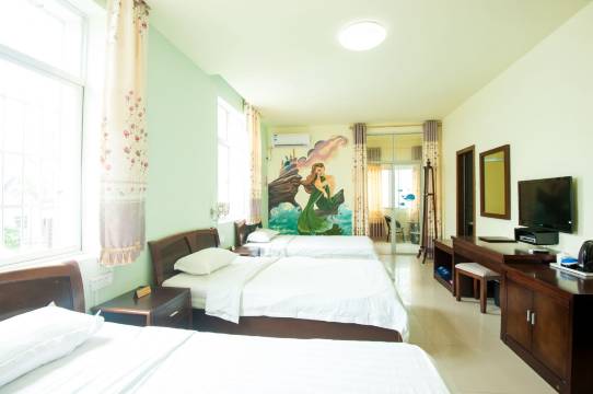 房间挺大的,卫生非常干净,而且老板娘人很好,很热情,价格也非常合理100多块一间,离海边又近,是出来旅行住的好选择。