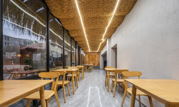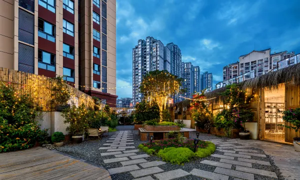早餐在楼顶花园,早餐也比较丰富,面条好吃,房间卫生打扫干净整洁,环境舒适,房间关线很好,还可以晒太阳,前台服务热情,响应很快,总之比较满意,推荐入住!