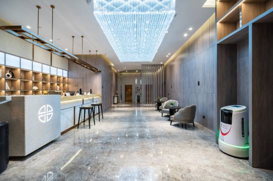 酒店总体设计以年轻、时尚为主,屋内配备空气净化器、送餐机器人等智能设备,期待您的光临。
