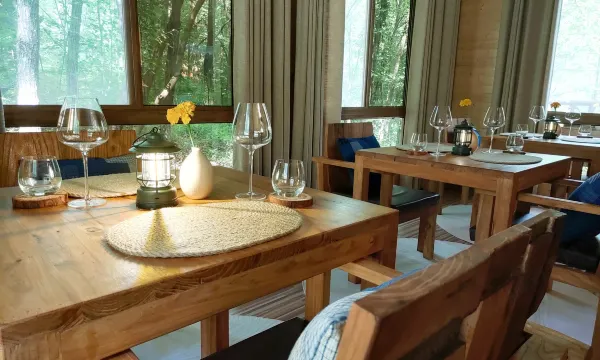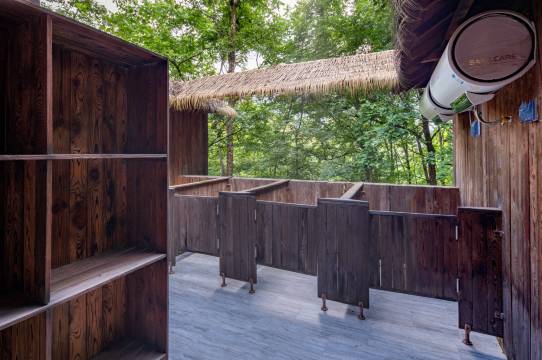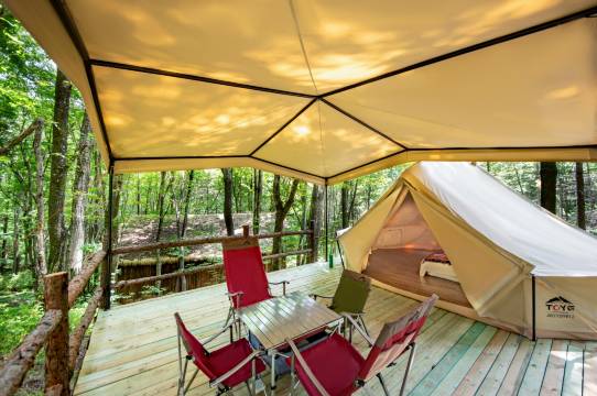 营地位于位于公园服务区,海拔高度约1600米,被誉为"山脊上的度假村",四周山体上下一碧,处处凝绿滴翠,从而造就了超2.4万/cm³超高负氧离子浓度。营地餐厅主营法式西餐,主厨曾就职安缦高端酒店,森林沐浴男女卫浴分开,充分亲近大自然,体验不一样的风情。7-9月常年温度16-23℃,是度假避暑首选之处。