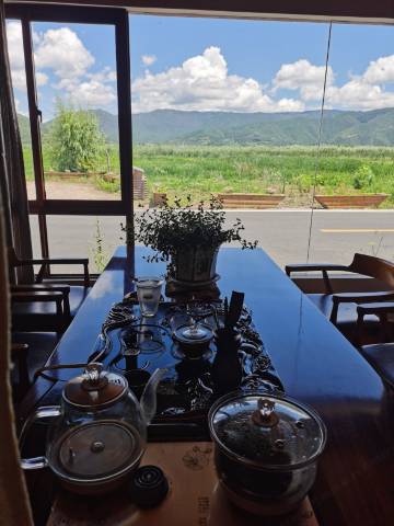 客栈老板身高一米九几,是典型的蒙古大汉。作为摩梭人,更作为摩梭人致富的引路人,曾带领村民以集体形式开展猪槽船游览、摩梭篝火晚会等一系列极具现代意义的旅游活动。他以此形式将优秀的摩梭文化,独特的母系社会财产传向全世界,让更多人知道了泸沽湖,知道了走婚。在十几年的旅游致富道路上,他为泸沽湖四川片区的标准化、规范化营运作出了显著贡献,因此连续两次当选四川省人大代表,受到全国民族团结进步大会表彰,应邀远赴英国参加伦敦大学交流,让西方国家更多地了解到中国对少数民族、群体及其文化的有效保护。到了泸沽湖,下榻听听客栈,喝着老板亲自泡的茶,听老板讲故事,胜过走进摩梭博物馆!