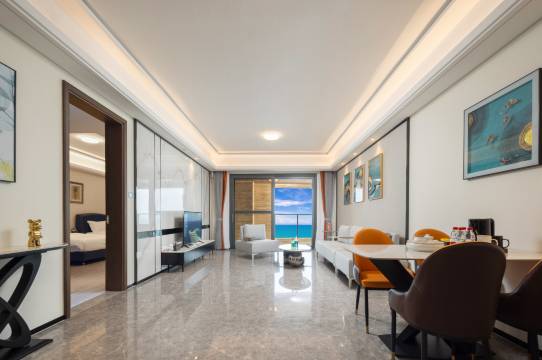 房间非常大,客厅和卧室阳台相连,孩子来回跑也不用担心有台阶绊倒。干净亮堂,离海边很近,带孩子玩的很愉快。