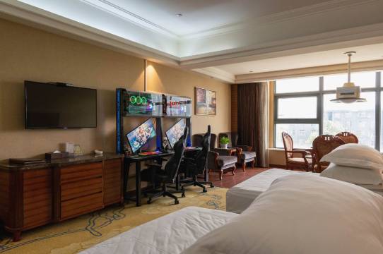 本酒店位于高铁南站商圈,星级酒店标准,当前顶流电脑配置9800x3d,全场50系显卡,狗屁王无线鼠标,卓威和2K高刷显示器,让顾客有专业电竞体验!