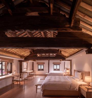 原为巍山县庙街镇大户宅院,建筑为明式四进院,双马坊设计,虽年久失修,仅剩三院,但大气的格局,低调内敛的建筑风格,依然能感受到当年主人家的富足和书卷气。自在文旅公司为保护这座宅院,斥巨资将其原样迁移到苍鹭谷。占地4亩,以“诗”、“书”、“礼”、“易”、“乐”、“春秋”六书命名,另设观鹭堂、茶室、书院、餐厅、彝族文化展厅、停车场、烧烤,露营地,菜园,配套非常完善,整体建筑堪称精美,装修低调奢华,艺术氛围浓厚,服务温馨规范,是巍山屈指可数的高端民宿。周边环境也非常优美,临湖滨水,推窗见景,拥有大面积的湖滨草甸,栖息着品类繁多的候鸟,还配有牧场营地、萌宠乐园、森林水吧、马舍。在这里可观湖光山色,骑马牧羊、品自耕自足的原生态农产品,体验正宗彝族风情,民宿可不仅仅是住宿,它是一种完美的田园生活方式。