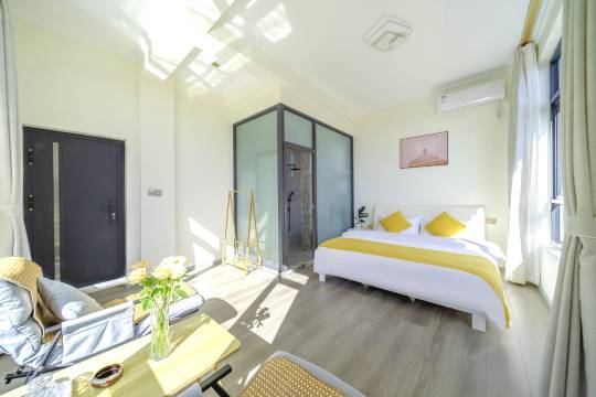 很喜欢民宿这里的环境,有花有水有鱼,老板升级了房型,我也特别喜欢这个房间、房间很大干净整洁舒适,通风采光超级棒,隔音也不错,设施齐全就跟新的一样。