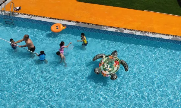 公共区域配备泳池、酒吧、儿童游乐区、烧烤休闲区、帐篷露营区、茶室、会议室、健身房、洗衣房、棋牌室、桌球室等。