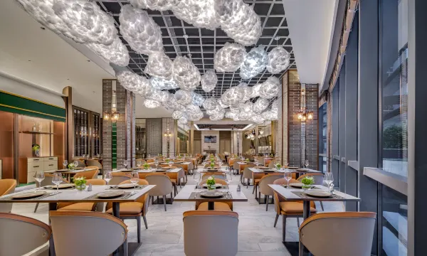 此次给外籍客户预定的,看到这个酒店可以接待外宾所以就来了,酒店大堂装修风格很特别也很干净,人气挺高进进出出人很多很热闹.礼宾部和前台员工也很热情的接待我们,其实到时就我们没有预定,但前台的帅小伙很热情也很细心的为我们介绍酒店的房型,最终决定预定了豪华大床,房间说实话虽然有点小,但施舍设备挺齐全,当时给安排的 20 楼的房间,视野也特别好,睡觉也很安静,晚上听客户说自己点了外卖,也是第一次体验了机器人的送餐服务,他很兴奋很高兴,早餐也独具一格的老外很喜欢,说在这里就能吃到很多美食,他特别喜欢,觉得下次出差这里可以是首选