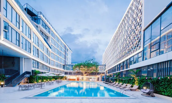 酒店很好,自助早餐品种还是比较多的,有洗衣房,有大泳池。酒店可以用餐,口味还是不错的。免费给我们延迟了退房,很棒!大堂的抓娃娃机比较好抓,小朋友很喜欢。离海边稍微有点距离,需要打车。去博后村夜市步行可到,吃饭方便。