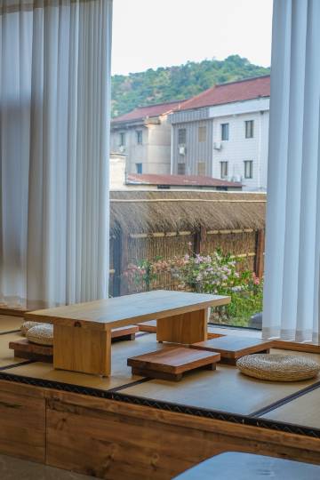 民宿位于城区内城峰中学绿道边上, 民宿共12间客房,日系风格,全木制的客房,给人一种温馨的感觉。装修材料选用高品质实木环保材料,配上优雅的家具和绿植,营造出温馨的视觉感受,让人有一种置身于大自然的感觉。前后有院子,出门附近有小河绿道,交通便捷。