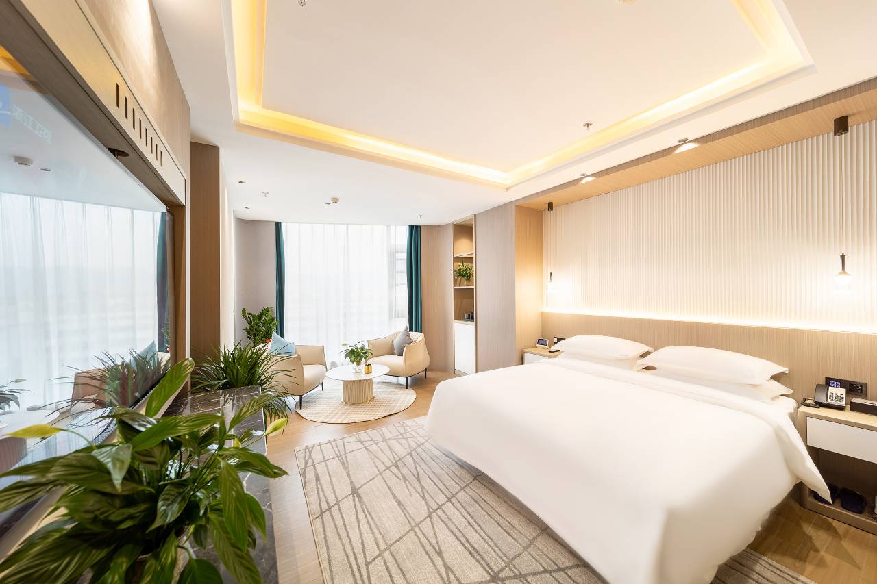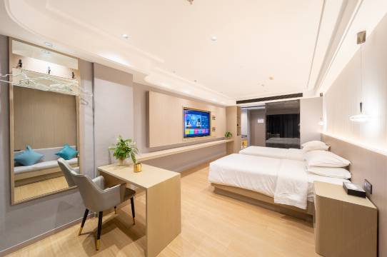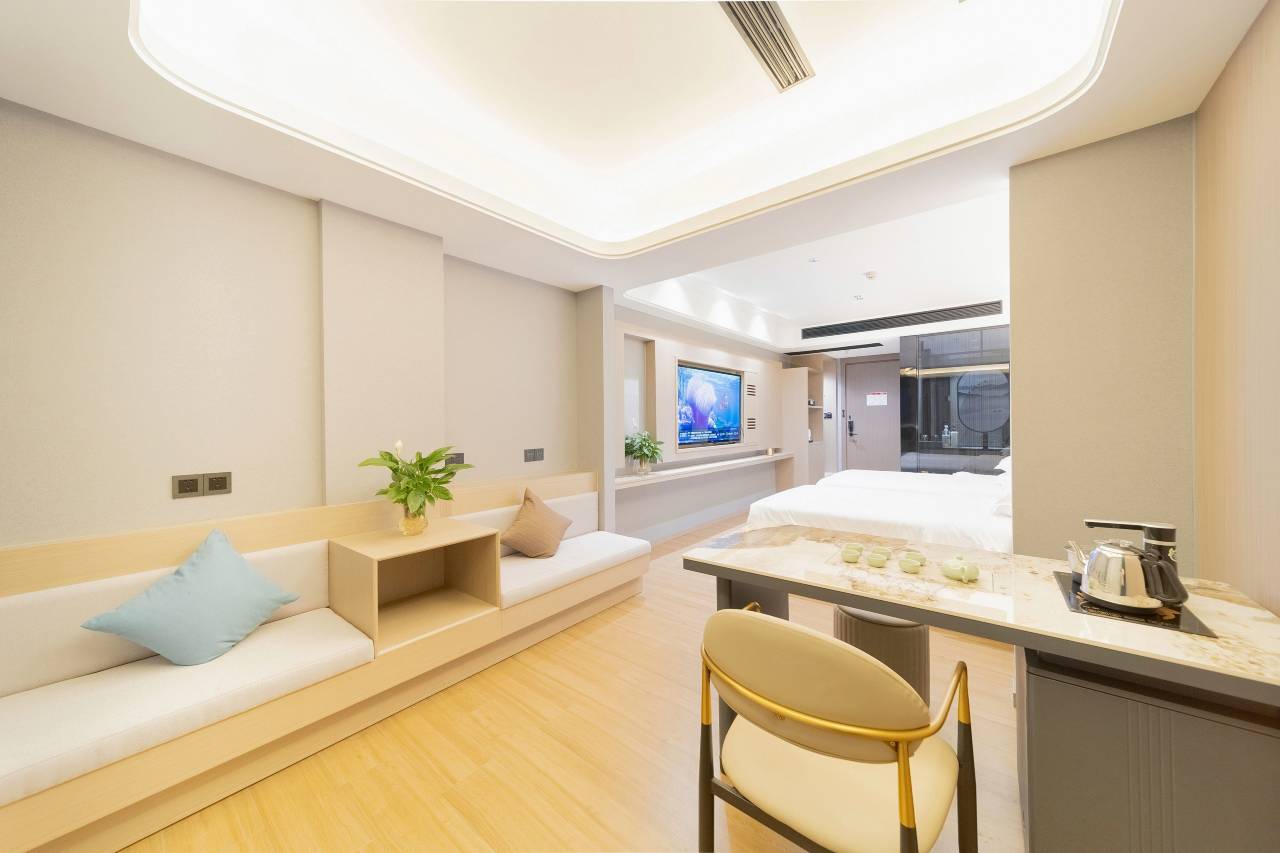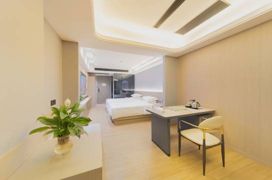 酒店是一家简于外,奢于内的装修格调,时尚精品与科技创新并存的主题风格,让你享受舒适的同时更能玩转科技,体验格调。装修硬件均为智能窗帘,小度蓝牙语音客;按高端酒店标准配置羽绒和乳胶床品,酒店设有自助洗衣房,以及专属停车场。客房采用独立卫浴,千湿分离,24小时热水恒温恒压,嵌入式独立空调,独立高清网络电视,4k投影,智能机器人等,WIFl覆盖,满足多种客户各种需求,我们将努力提供无微不至的服务与关怀,在您领略现代酒店自然结合的同时,更能体验尊贵服务让你商旅无忧。这里的每一处陈设都有故事,您的每次入住都是回家。