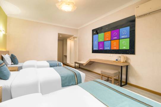 到店商家特别热情,帮忙提行李,说还可以到店接送,带了一个小朋友,商家直接帮忙升级为三床房,特别舒适。早上起来能看到山上雨雾缭绕。综合服务满分💯。