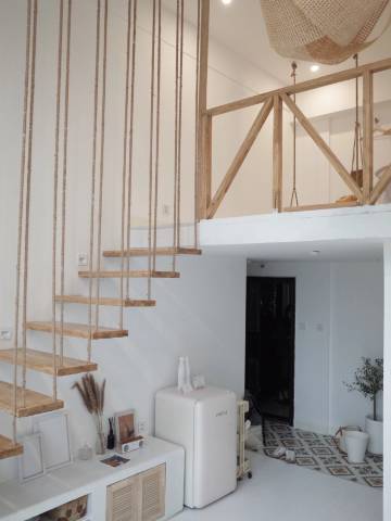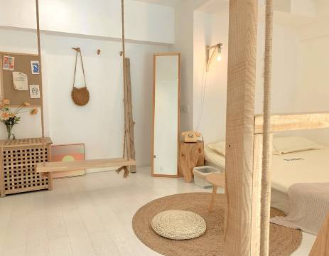 环境:整体是干净的奶白色+原木风,软装都很有审美,没有多余杂物,拍照巨出片!