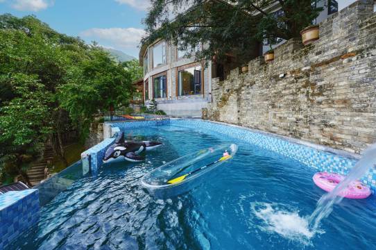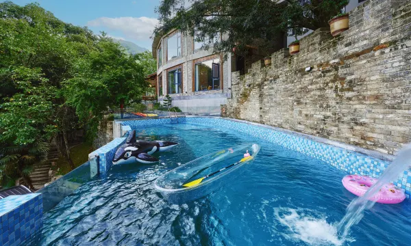 民宿坐落在美丽的黄山市百佳摄影点阳台谷内,海拔488米,周边有500年-1600年左右的香榧树、苦株树等环绕,负氧离子特别明显高于市区;民宿内配备了中餐厅、西餐厅、会议室、咖啡吧、茶吧、棋牌室、室外泳池、桑拿房、KTV、游戏室;民宿外常年流淌的山间小溪更是小朋友的娱乐嬉戏的地方,摸螺狮、抓鱼、捞虾等玩的不亦乐乎!