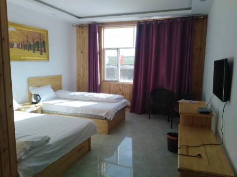 干净敞亮,服务也很好,位置就在日落山下面,出门爬山10几分钟就可以到日落山,日出很美,景色美到爆,饭菜很可口。