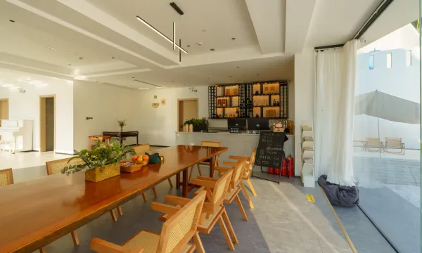 管家式服务真正做到了宾至如归的感觉~老板人超级好,给推荐的餐厅和游玩地点都很棒~早餐丰盛健康~玉米🌽都是自己家种的~西瓜🍉也是~简直了~老板妈妈煮的面好吃到汤都被儿子喝干净~卫生环境非常干净~哪里都一尘不染的~泳池也很干净~带娃首选~~有一说一泳池比鱼鳞坝强多了哈哈哈~~~去每个地方游玩之前老板都会把停车地点定位发给你~~体验感太好了~~❤❤❤❤❤~公区很大~如果是和朋友一起来~晚上喝喝小酒吹吹风~安静又惬意~🍻🍻🍻~下次还来~