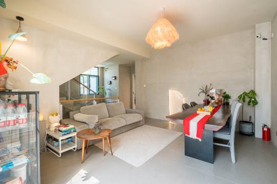 朱家角古镇的一处低密度度假别墅区,临近淀浦河。民宿为独立别墅,自带临河小院,坐在小院的秋千上,喝口茶,欣赏湖面上自然生态下的美景,感受着对岸绿意浓浓的道路,时不时白鹭飞过,河水里的鱼跃起,那两只鸭子在打闹嬉戏。那一刻感觉时间停止,只剩下心跳和呼吸。 民宿温馨的布置让客人有回家的感觉,每个角落都会被精心的布置,每一棵植物都在认真而努力的绽放自己的魅力,泡泡玛特的IP人物时不时的出现在身边,坐在沙发上看着宫崎骏的一部部动画书,听着滚动播放的空灵音乐,让你的心彻底平静。 店主是一位建筑设计师,在我们民宿的五个房间体现了五种不一样的特色,让你可以多一种留下来的选择。