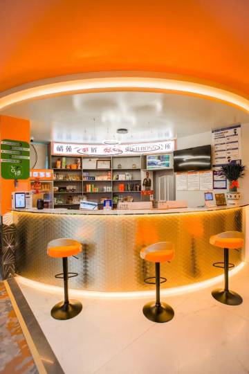 正如我们酒店的名字“橘苑”,酒店内房间的整体布局以橘色调为主,主打韩系的温馨感,给人一种阳光温暖的视觉感受。酒店内有多种房型可供选择,有极具特色的秋千房,也有浪漫满满的复式星空房,还有亲子房等多种房型。每个房间都配有投影设备、沙发座椅、茶几桌子等特色设施,24小时热水供应、独立卫生间淋浴间、高速WiFi、空调等基础设施一应俱全。酒店二楼配装有娱乐台球俱乐部,可以在空闲时间打上几杆,另有棋牌室让您的休闲时光充满乐趣。同时酒店提供贴心接店服务,携带大件行李的朋友可以提前联系酒店预约。