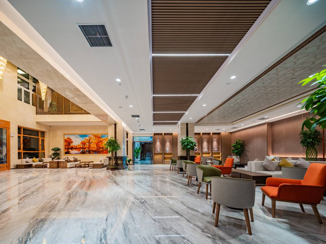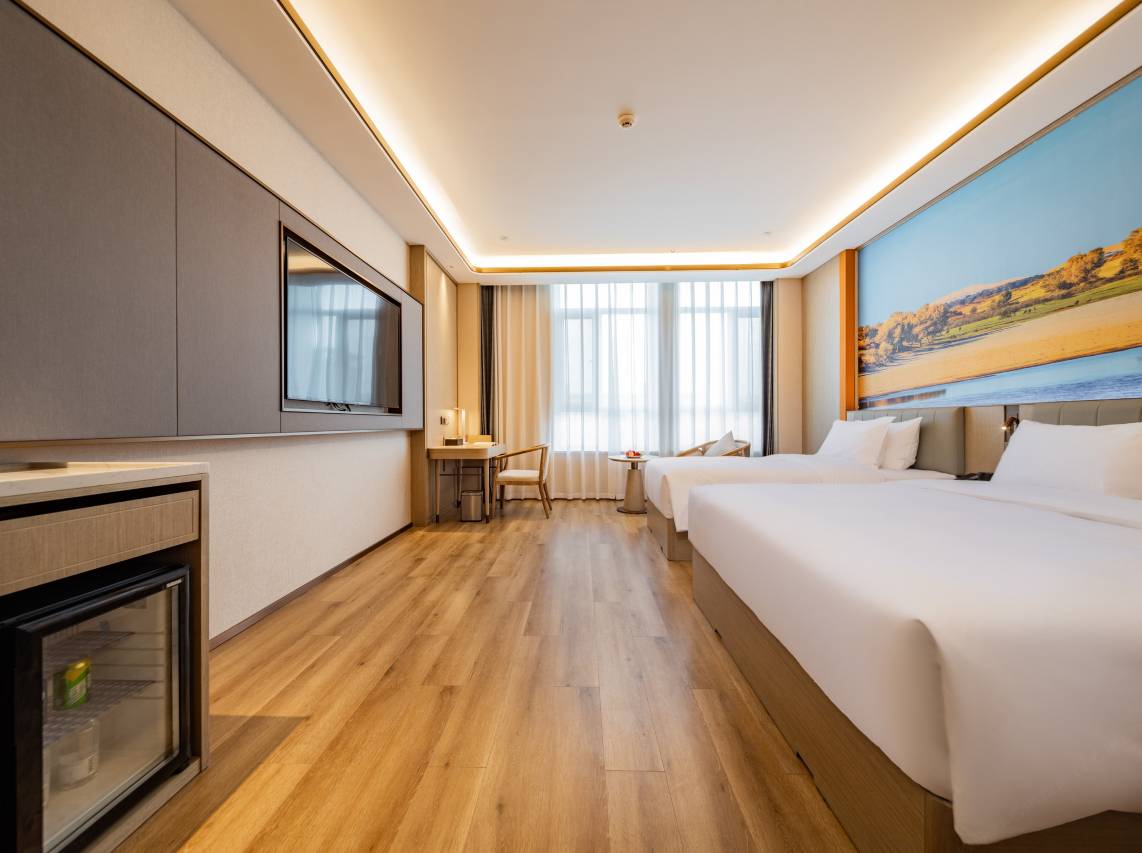 酒店采用现代中式风格设计,客房配套设施齐全,配设挂壁式液晶电视、冰箱等,智能客控带给你舒适便捷新体验,管家式服务将为每位贵宾提供全新的入住体验。