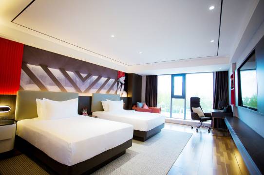 首先说下房间设施:全屋智能,用小度可以控制房间一切。房间干净整洁,床垫很舒服,问了一下前台,说床垫都是定做的,床比较大,是2米乘2米的,睡着炒鸡舒服。对面就是湖,虽然是路边,但是窗户好像是做了隔音,一点都不吵。前台服务很好,客房阿姨很热情,总之下次还会来,推荐!!!