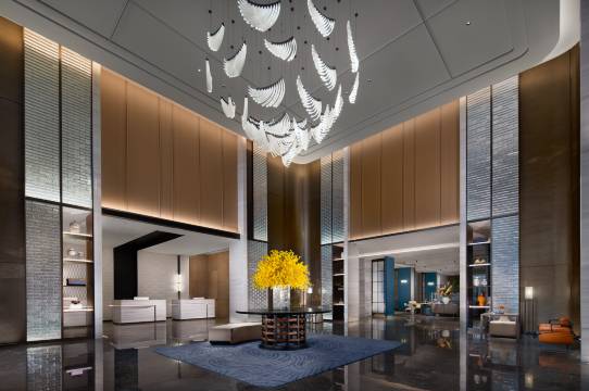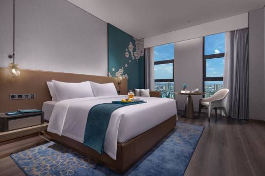 酒店的环境非常好,带了小朋友所以加了钱升级了房型,有免费的迷你吧和欢迎水果,晚上9点钟后还有宵夜,酒店服务人员都挺好的。6楼的儿童区可以玩好久,旁边还有健身房,挺方便的。办理入住的时候,前台直接给了儿童牙刷和拖鞋,晚上点外卖还有机器人送到房间,很方便,物超所值的一家酒店。