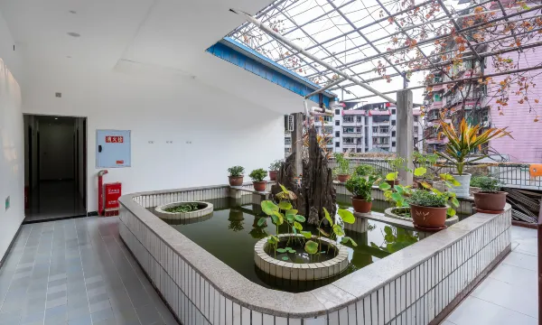 环境好,三楼还有一个水池假山,房间进去有股香味,店家服务很好,价格很便宜,窗外能看到郁郁葱葱的树,位置也很好找。