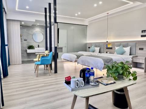 酒店位于楚雄市东部片区,毗邻楚风苑,阳光花园小区,周边有彝海公园,福塔公园等。酒店整体装修轻奢风简约时尚,每个楼层都配有电梯,客房宽敞舒适,双层隔音玻璃让您静享睡眠,独特的悬空床设计会带给您不一样的感觉哟!房型多样,有棋牌房,套房,三人间等供君选择,房间内有高端洗漱用品,品牌乳胶床垫,羽丝绒贡缎床上用品、24小时热水、独立卫浴等为宾客打造惬意舒适的睡眠空间。酒店门口设有停车位,提供叫醒服务、24小时前台温情服务、是宾客商务出行、休闲度假的理想选择,酒店期待您的光临!
