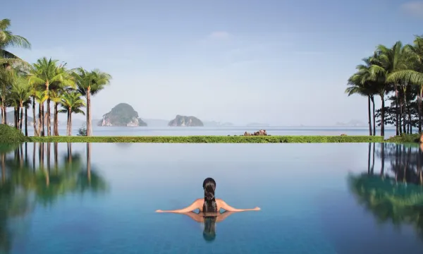 这座静谧胜境坐落在泰国南部石灰岩山地、繁茂雨林和清澈水域之间,自然风光秀丽多彩,引人入胜。普拉湾丽思卡尔顿隐世精品度假酒店坐落在沙海滚滚、水天相接之处,坐拥阿曼达海壮丽美景,是甲米的一座迷人海滨度假酒店。欢迎莅临下榻,开启惬意探索之旅。在这里,优美迷人的自然景观与酒店静谧豪华的氛围融合在一起,为您打造融入自然的超凡感官体验。这座个性化逍遥之所将精致闲适的氛围、当地诱人美味和私人服务融合在一起,供您尽情畅享周边的自然美景和人文风情。如果您想寻找隐匿于世界静谧角落的豪华休闲之所,普拉湾丽思卡尔顿隐世精品度假酒店正是您的理想下榻之选。