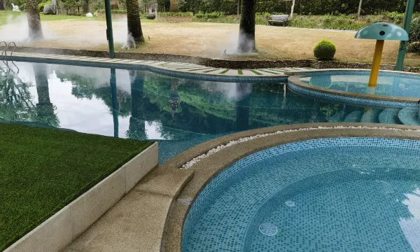园区环境幽雅,泉声蛙鸣、雾气缭绕,彷佛置身于瑶池仙境,别具匠心和尽显奢华的环境设施,自豪而矜持的服务构成酒店的主要特色,是旅游者的家,是企业高管会议、各类商务交流活动的佳选之地,是户外婚庆活动为主题的高级场所,是一处能让你释放压力,聆听鸟语花香、畅享自然风光的度假胜地,更是草坪露天各式派对的好场所。