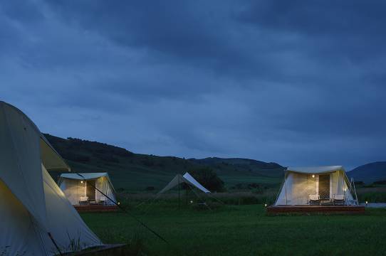 下着大雨入住,还赶上了停电,意外收获一顿烛光火锅。第二天早上雨后天晴,景色超漂亮,躺在帐篷里很惬意。营地的活动很多,吃的也不错,各方面服务细致周到,注重细节和品质,有机会还会来玩。