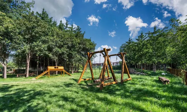 房间窗户可以直接看到小院,满眼都是绿色真的特治愈。**有自己种的菜和当季特色,**特别鲜。儿童游乐场也很大,秋千滑梯什么都有。萌宠乐园的小兔子很可爱,喂食的时候也特别乖🐲🐲🐲