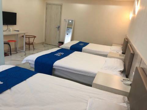 距离火车站近,买东西方便楼下就是超市,相对比较安静,床品被褥比较新,床没有塌陷,睡着还可以!!!!!!!