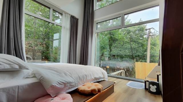 非常满意的一次旅行,酒店位于景区最深处,就是最高处,空气清新,风光宜人,周围有多家农家乐。虽然是民宿但是设施很豪华,TOTO的卫浴很智能马桶,乳胶床垫和枕头,65寸海信电视,唯一不足房间内缺少桌椅。总体来说还是非常满意的。